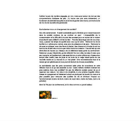 repenser nos valeurs. Un retour à la simplicité, à une certaine frugalité même.